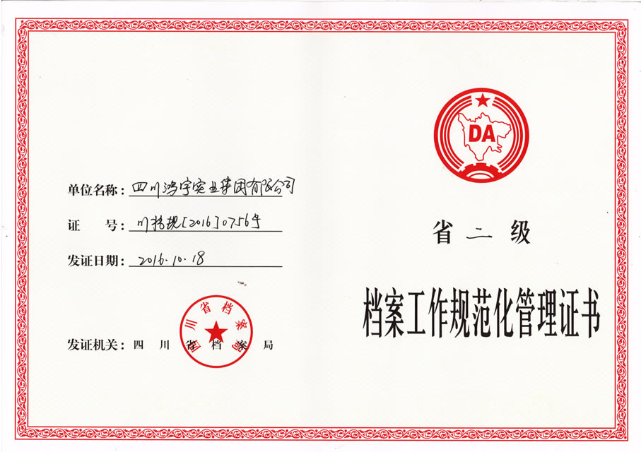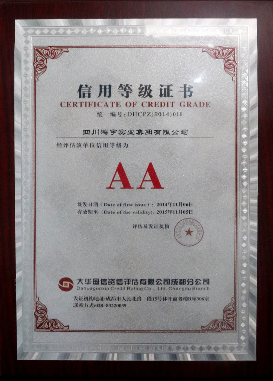 四川鸿宇实业集团有限公司始建于2002年4月,位于“中国科技城”——四川绵阳,注册资本1.2亿元。职工总数400余人,其中各类专业技术人员、中高级职称300余人。 鸿宇秉承“诚信、拓展、合作、奉献”企业精神,坚持“一业为主、多元发展、创新务实、内联外拓”的经营理念,建立了科学的管理体制和运行机制,并形成了具有鸿宇特色的管理模式和企业文化。
